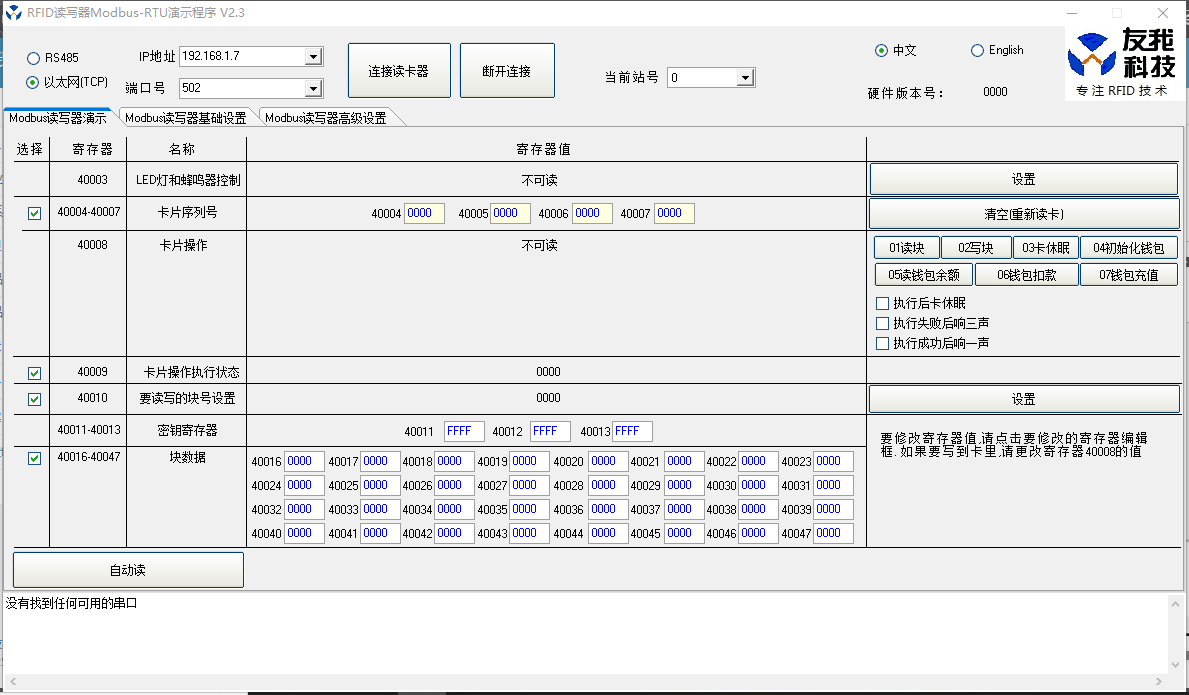 支持Modbus協(xié)議的IC卡讀卡器開發(fā)包和配置程序