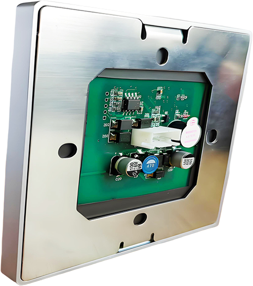 超薄合金外殼配以亞克力面板,可以直接安裝在金屬板板上